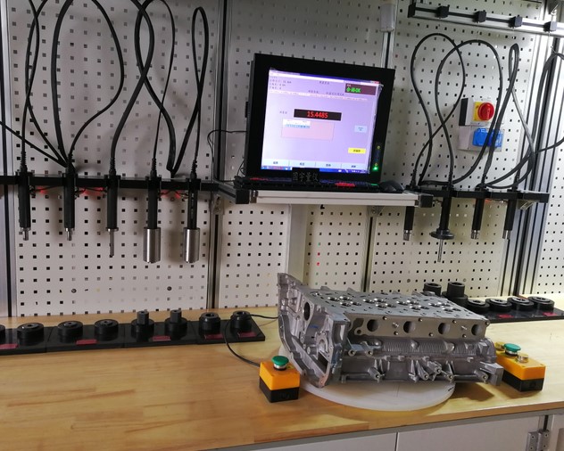 內(nèi)徑測量裝置的整套設(shè)備包括:內(nèi)徑測量儀、主控機(jī)柜(內(nèi)裝控制單路、通訊設(shè)備和工控機(jī))、顯示設(shè)備(液晶顯示器)、聲光報(bào)警裝置和打印機(jī)等,可連接打標(biāo)機(jī)(激光和氣動(dòng))檢測完自動(dòng)打標(biāo)二維碼。